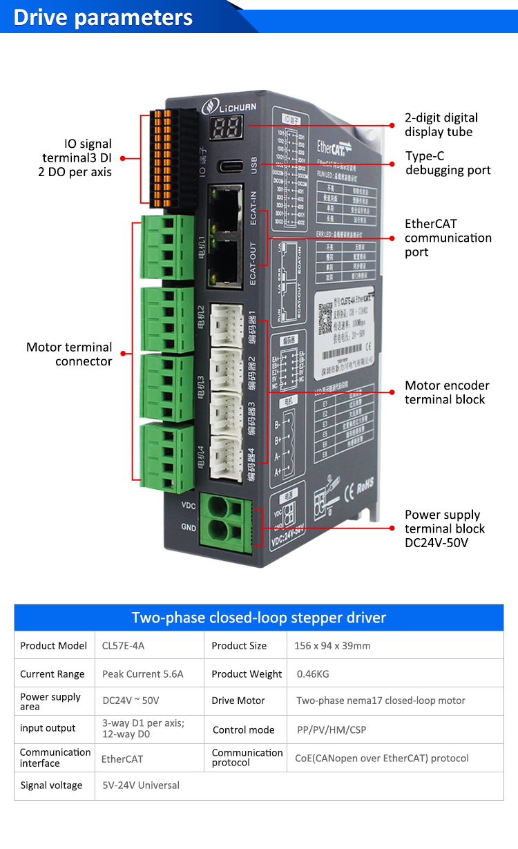 Kit de drivere pentru motor pas cu pas în buclă închisă EtherCAT 2Phase Nema24 cu 2 axe CC