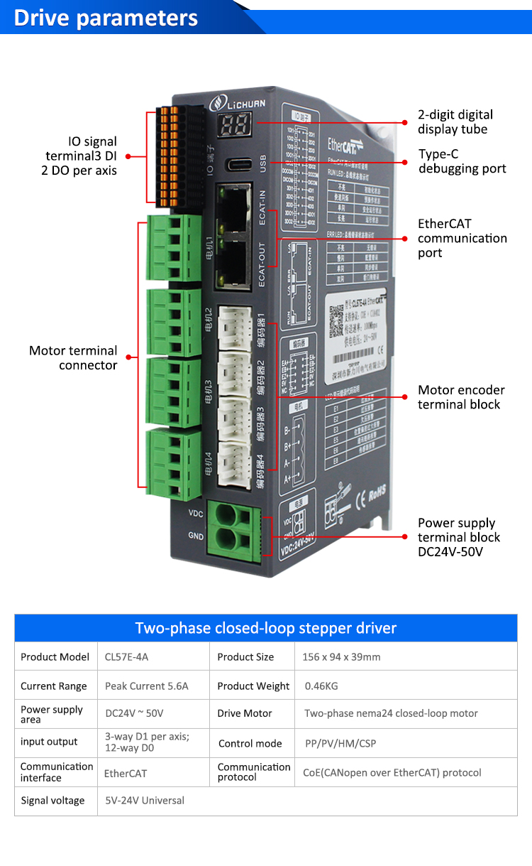 Kit de drivere pentru motor pas cu pas în buclă închisă EtherCAT 2Phase Nema24 cu 2 axe CC