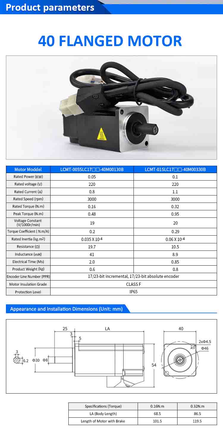| Model motor | LCMT-005SLC17-40M00130B | LCMT-01SLC17-40M00330B |